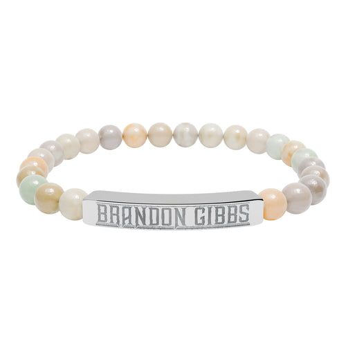 Brandon Gibbs Natural Stone Engraved Bar Bracelet — Beaded Stretch Bracelet