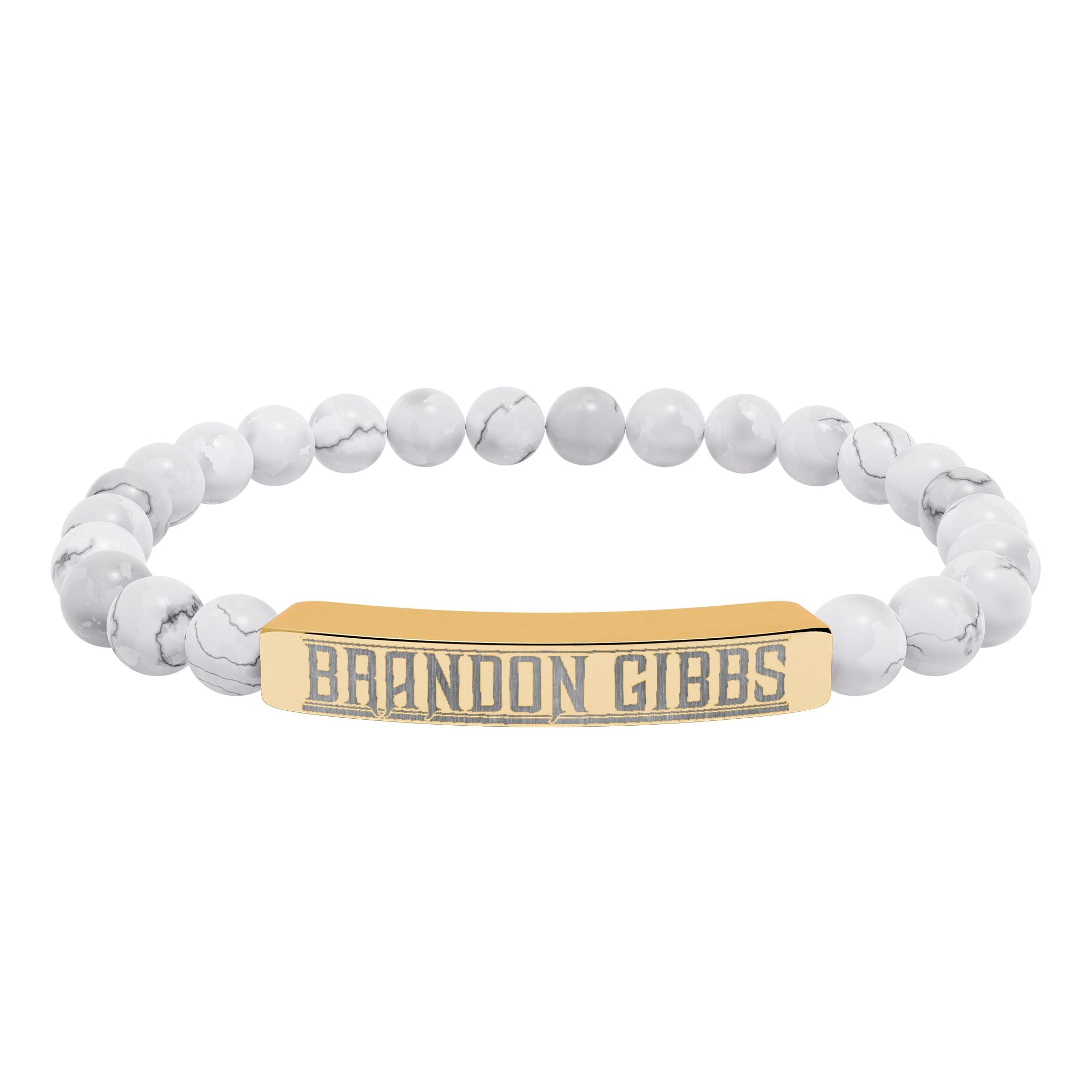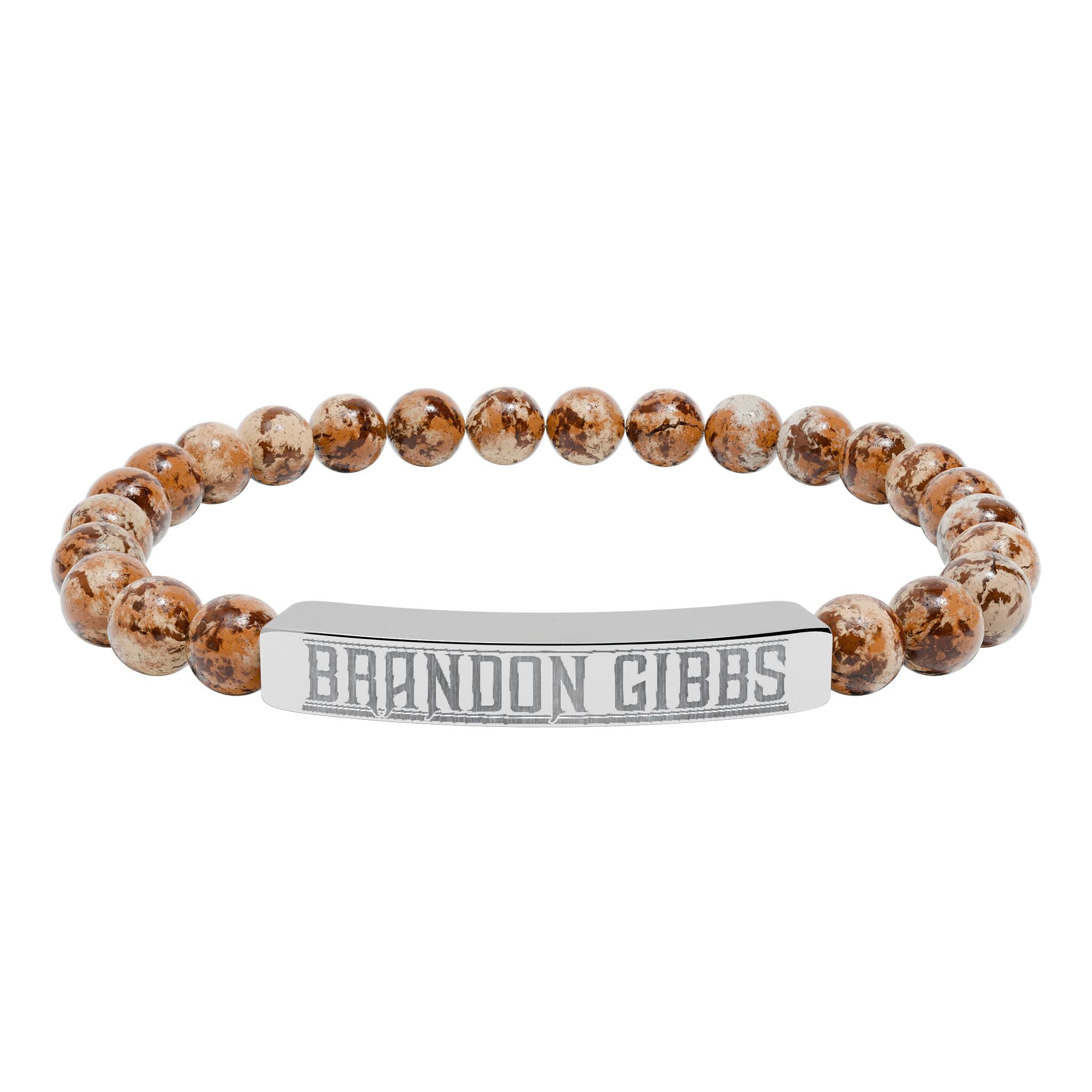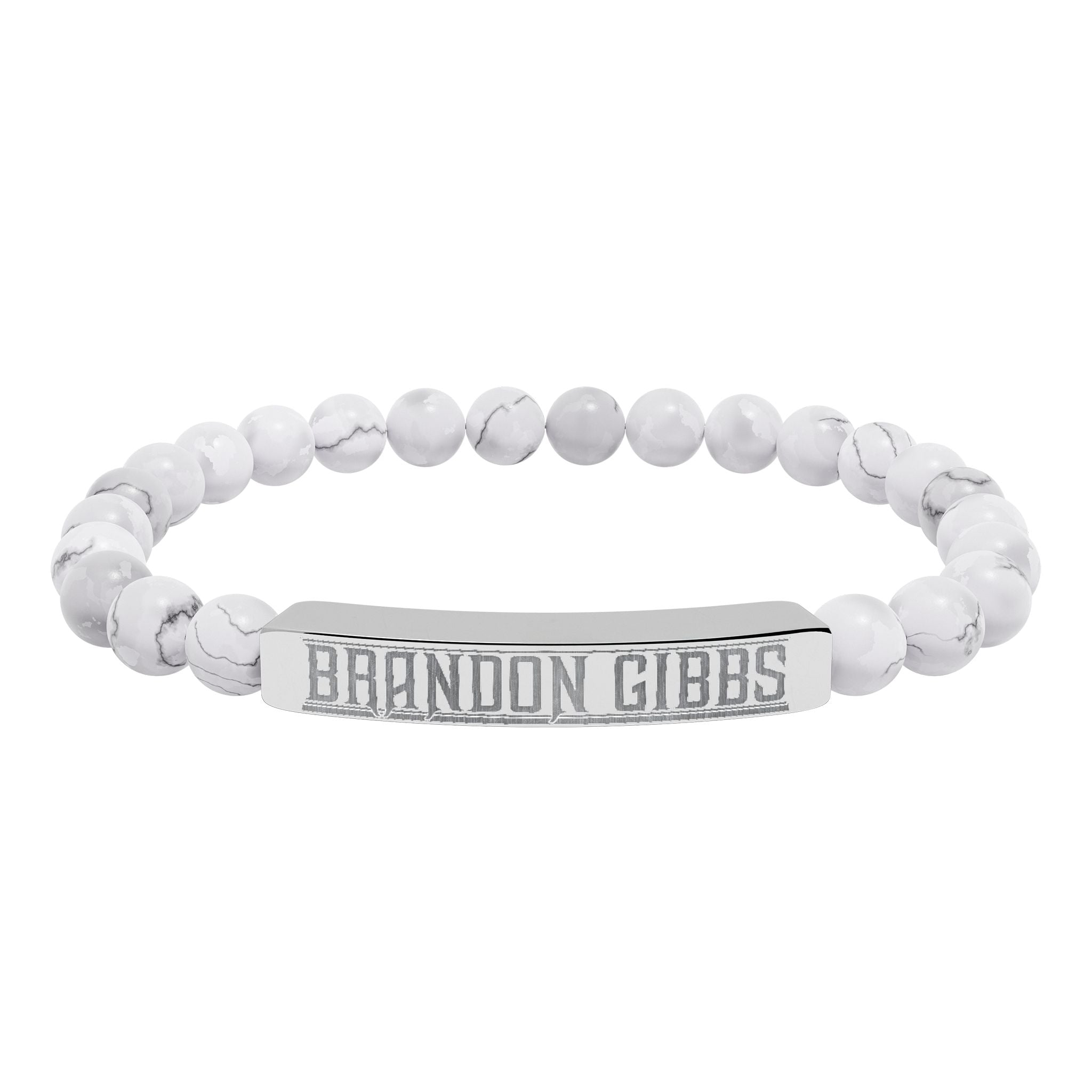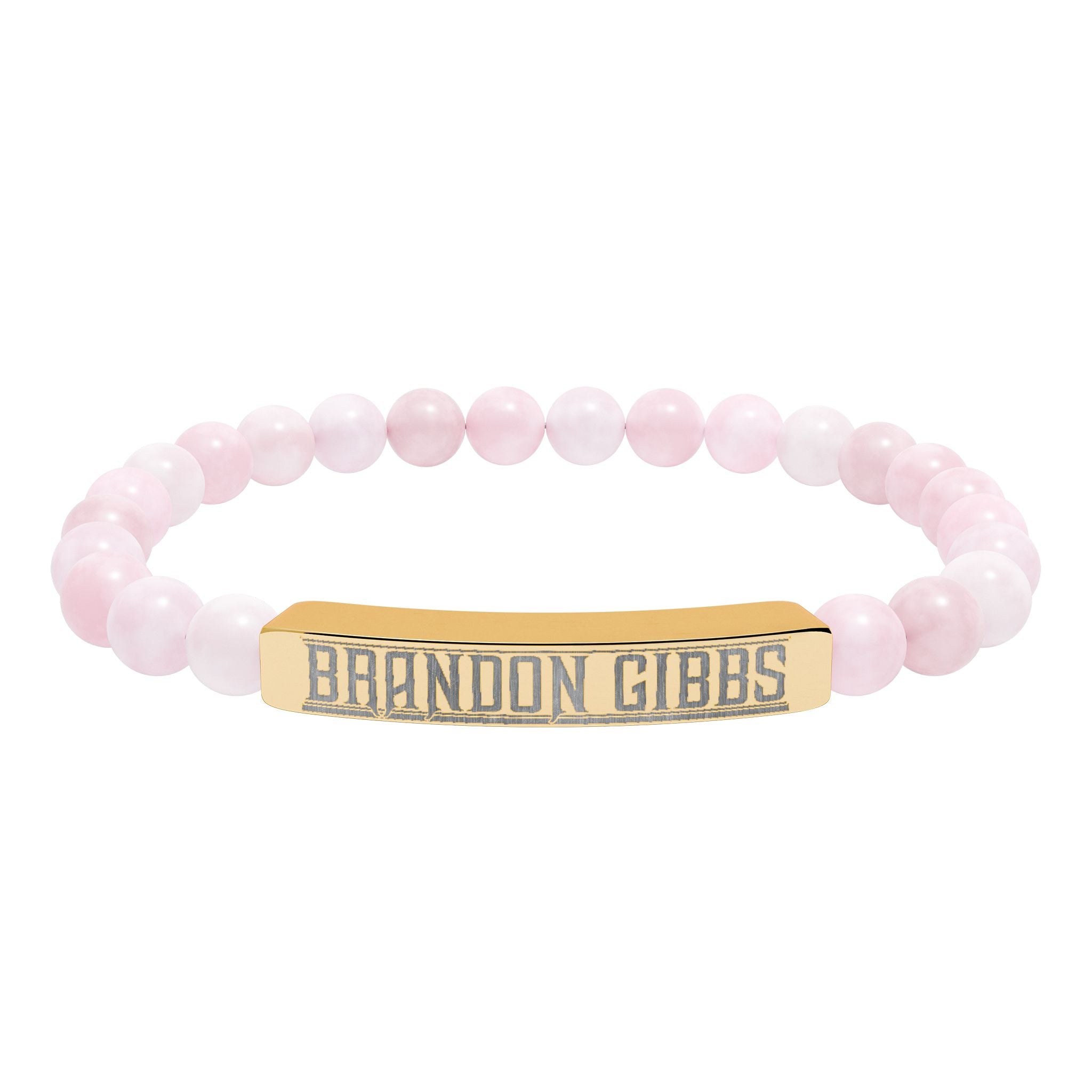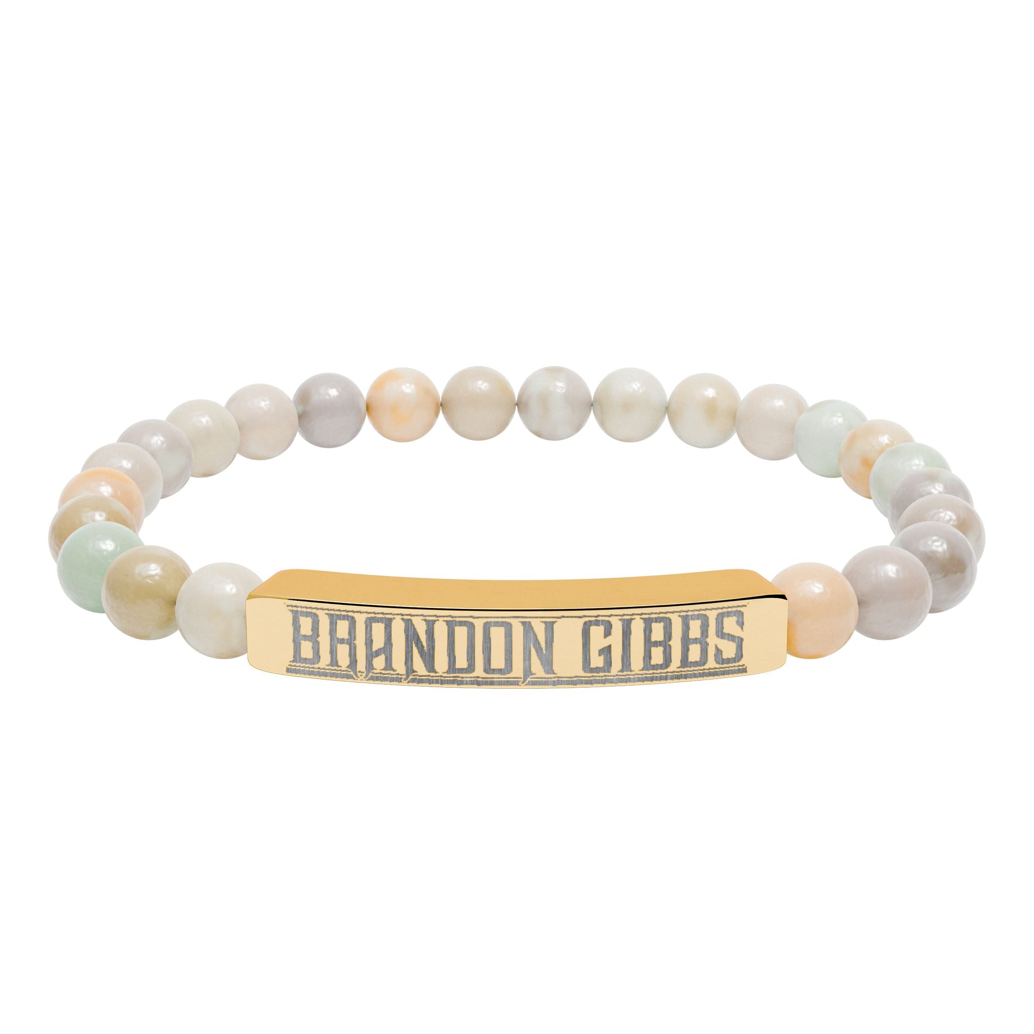 A calming, modern stretch bracelet that blends natural stone beads with a sleek engraved stainless steel bar. Smooth, muted stones — from soft greens and peaches to cool white marbled tones — sit comfortably on an elastic cord, while the brushed 316L stainless bar carries a crisp, permanent engraving. Lightweight and hypoallergenic, this bracelet layers easily with everyday looks or stands alone as a quiet statement. It arrives in a white gloss jewelry box with non-tarnish cotton for safe keeping, and gold PVD options add warm, lasting shine without compromising durability.