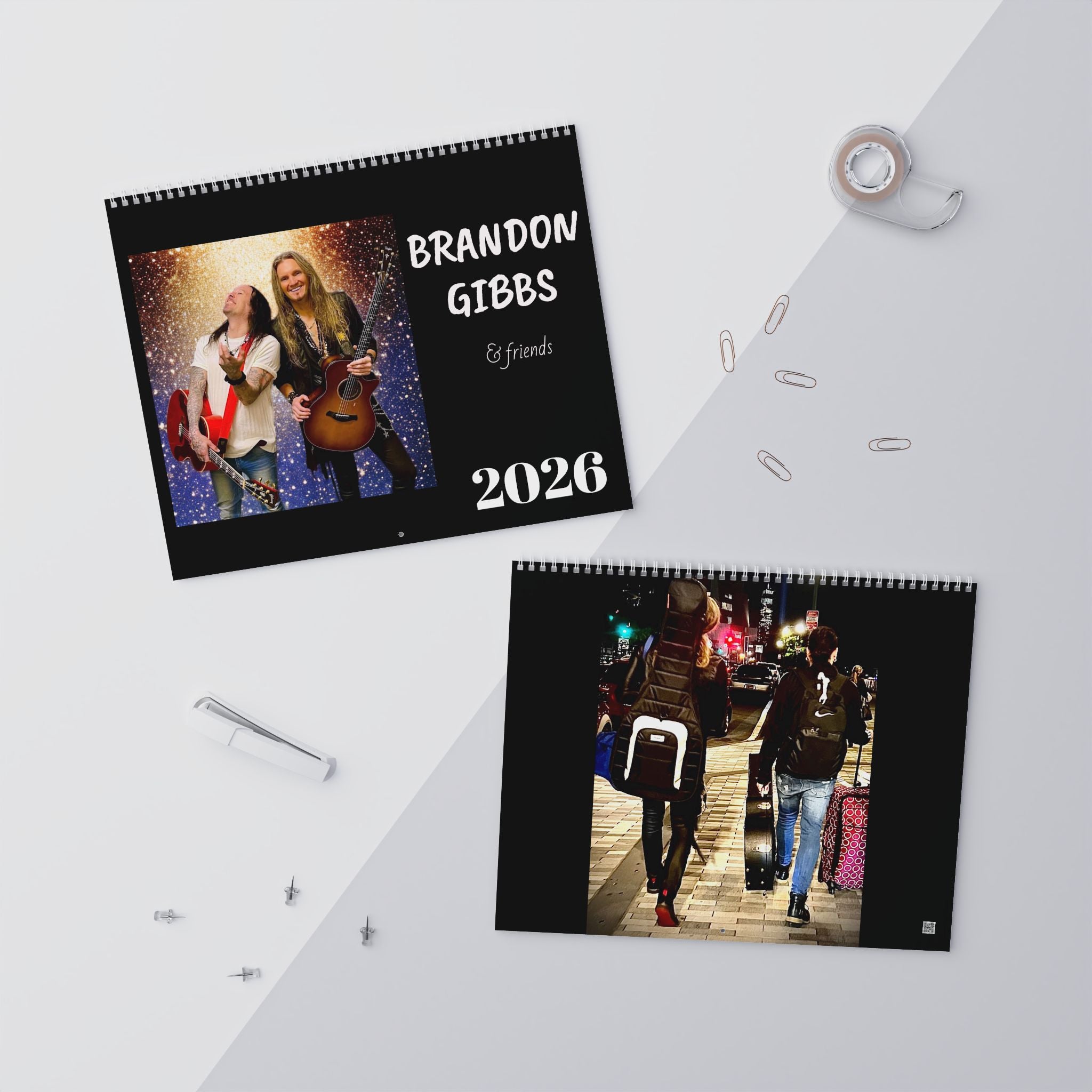 Available in 14" x 11.5" glossy stock, with vibrant colors. Each calendar comes with a spiral binding and a centered hole for wall hanging. Brandon and Friends 2026 what a year!